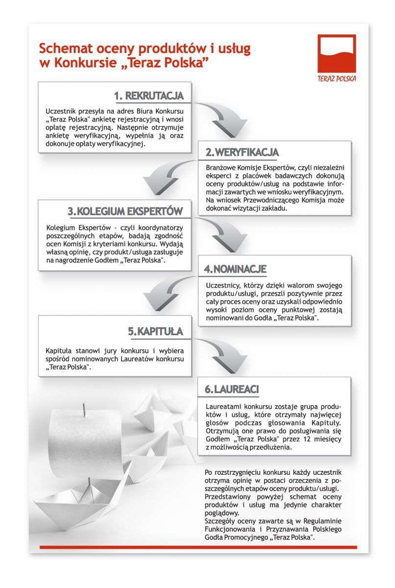 Po przesłaniu do Fundacji wypełnionej ankiety rejestracyjnej każda z firm zainteresowanych przyznaniem Godła „Teraz Polska” otrzyma ankietę weryfikacyjną oraz Regulamin Konkursu „Teraz Polska” obowiązujący w XXXVI edycji Konkursu, który zawiera szczegółowe procedury oceny i weryfikacji.