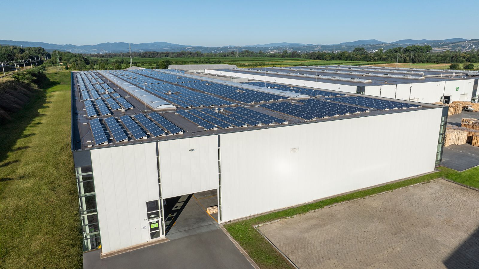 Na dachach hal produkcyjnych FAKRO w Nowym Sączu znajduje się jedna z większych instalacji fotowoltaicznych w Polsce. Montowana w dwóch etapach, na dzień dzisiejszy posiada moc 2.105kWp. Lokalizacja i umieszczenie jej na pokryciu budynków okazało się strzałem w dziesiątkę – dzięki temu tereny zielone niedaleko siedziby firmy zagospodarowane zostały w inny sposób.
